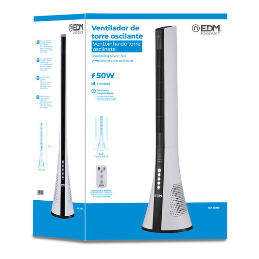 Ventilador de torre con mando blanco 50W | EDM